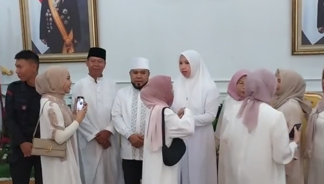 Kota Bengkulu >> Gubernur Bengkulu, Helmi Hasan usai Sholat IdulFitri menggelar Open House di Balai Semarak Provinsi Bengkulu, Senin (31/03/25). Hadir di kesempatan tersebut Ketua DPRD Provinsi, Sumardi, Anggota Komisi 4 DPRD Provinsi, Teuku Zulkarnain, Anggota Komisi 3 DPRD Kota, Dediyanto, Forkopimda Provinsi Bengkulu, pejabat-pejabat Pemerintahan Provinsi Bengkulu. Juga hadir Walikota Bengkulu, Dedy Wahyudi beserta jajaran Pemerintah Kota Bengkulu, sehingga lebih meriah suasana berlebaran bersama Gubernur Baru Bengkulu, Helmi Hasan.