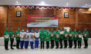 Kota Bengkulu >> Ketua PERSIT KCK KOORCAB REM 041 PD II/SRIWIJAYA Diyah Achmad Budi Handoyo, memimpin apel dalam acara pertandingan olahraga dan pelatihan Suminagashi dalam rangka HUT TNI ke – 77 tahun 2022 di halaman Gedung Juang 45 Korem 041/Gamas Jl. Pembangunan No. 3 Padang Harapan, Rabu ( 28/9/2022 )