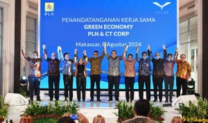Makassar >> PT PLN (Persero) menjalin kolaborasi dengan PT CT Corpora (CT Corp) untuk pengembangan green energy di lingkungan bisnis CT Corp. Sinergi ini merupakan bentuk komitmen PLN dalam mendukung kebutuhan energi hijau sektor industri dan pelaku bisnis di Tanah Air sebagai upaya mencapai target Net Zero Emissions tahun 2060 atau lebih cepat.